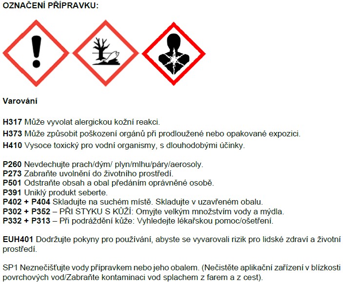 Při použití sólo aplikace přidávejte smáčedlo ASYSTENT+ v dávce 0,1 l/ha.